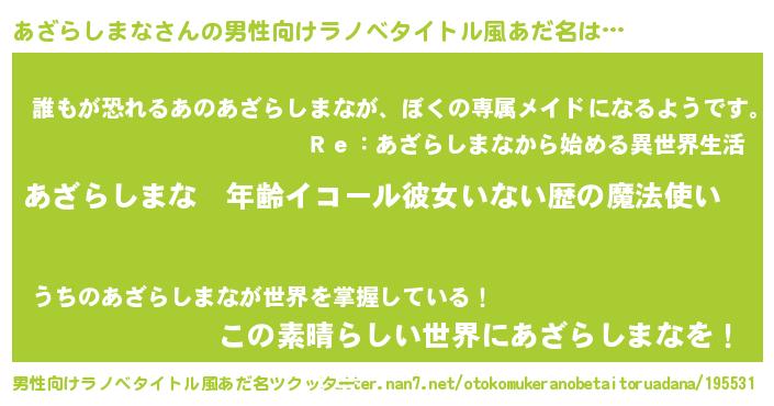| 女子向けラノベタイトル風あだ名 | 『あざらしまなの玉の輿計画!』 |