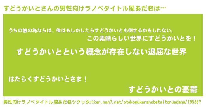 | 女子向けラノベタイトル風あだ名 | 『異世界で失敗しない100のすどうかいと』 |