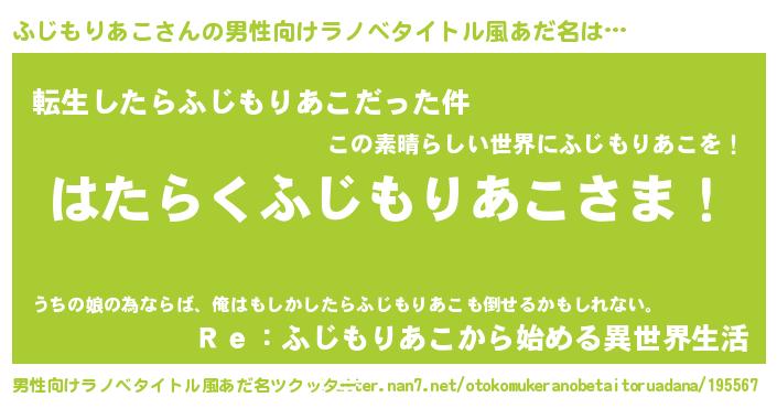 | 伝説のあだ名 | 『秘められし忍者ふじもりあこ』 |