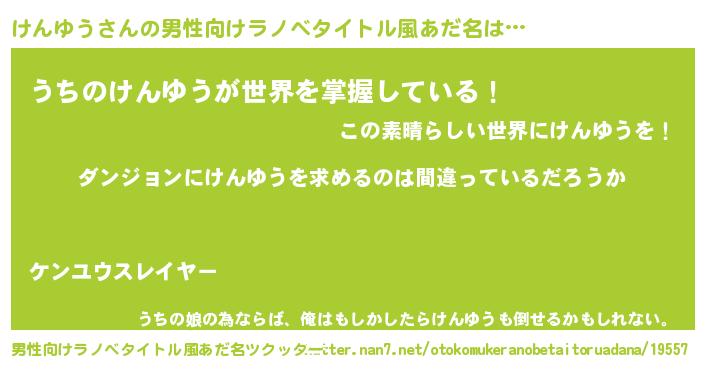 | ヒーロー風カッコイイあだ名 | 『魔戒騎士ケン』『ウルトラけんゆうマン』 |