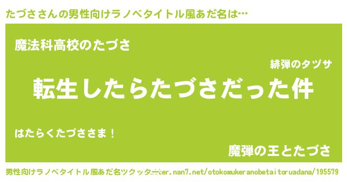 | ヒーロー風カッコイイあだ名 | 『サイバー戦士タヅサ』『仮面タヅダー』 |