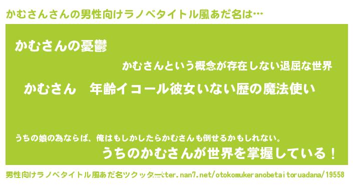 | 胡散臭い通販商品みたいなあだ名 | 『億万長者になれる霊験あらたかなお札…その名も「かむさん」』 |