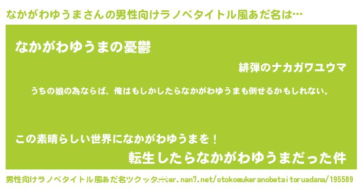 | ファンタジー風あだ名 | 『エターナルナカガワユウマー』 |