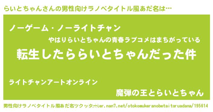 | 料理風あだ名 | 『らいとちゃんとほうれんそうの和風グラタン』 |