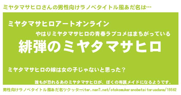 | 胡散臭い通販商品みたいなあだ名 | 『必ず成功するブレスレット…その名も「ミヤタマサヒロ」』 |