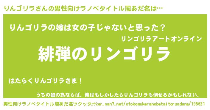| 胡散臭い通販商品みたいなあだ名 | 『信頼と実績のサプリメント…その名も「りんゴリラ」』 |