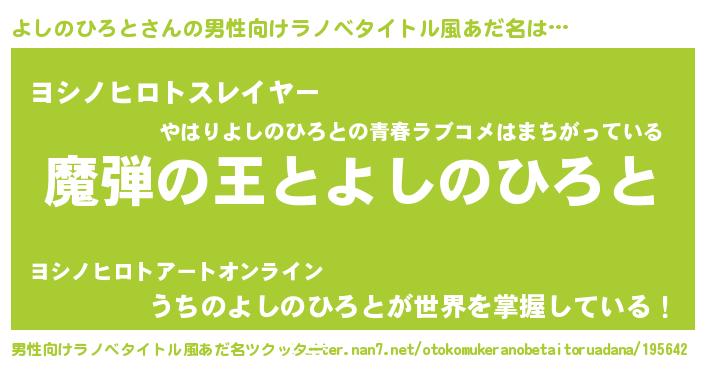 | 意味不明あだ名 | 『住所不定無職よしのひろと(43歳)』 |