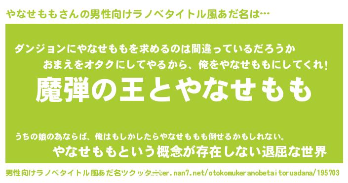 | 胡散臭い通販商品みたいなあだ名 | 『世界中を虜にした100年もののヴィンテージワイン…その名も「やなせもも」』 |