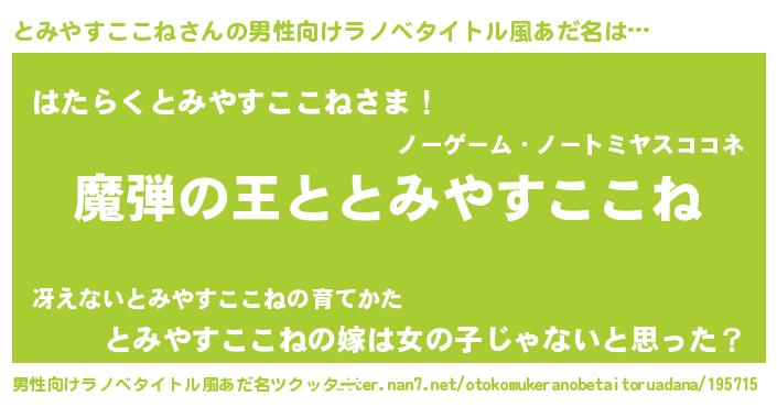 | 意味不明あだ名 | 『住所不定無職とみやすここね(4歳)』 |