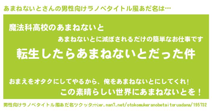 | 胡散臭い通販商品みたいなあだ名 | 『テレビで話題のアガリクス…その名も「あまねないと」』 |