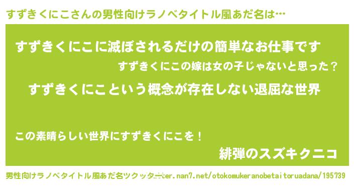 | 女子向けラノベタイトル風あだ名 | 『すずきくにこの契約王妃』 |