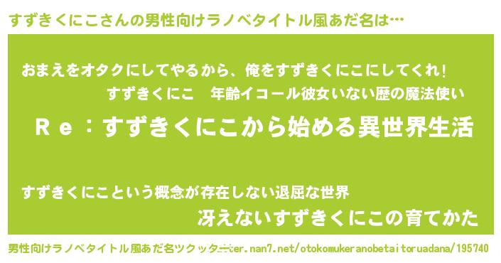 | ヘコむあだ名 | 『すずきくにこ(笑)』『すずお』 |