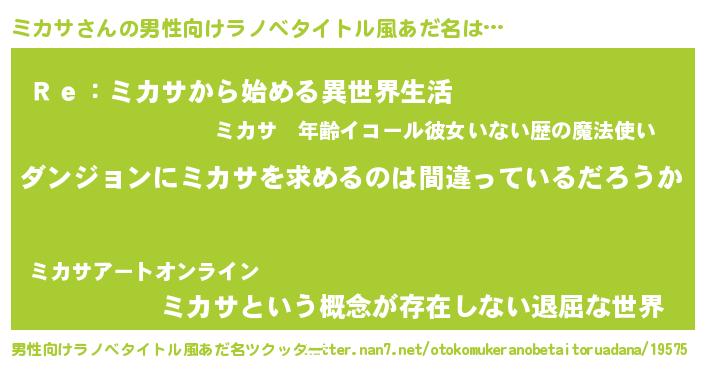 | 女子向けラノベタイトル風あだ名 | 『ミカサは平凡を望む』『闇のミカサ』 |