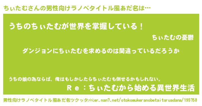 | 女子向けラノベタイトル風あだ名 | 『ちぃたむは平凡を望む』『闇のちぃたむ』 |