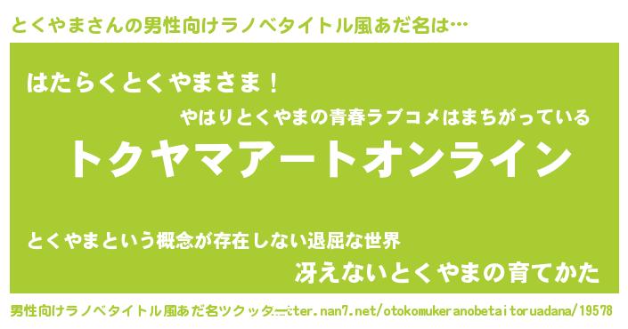 | 胡散臭い通販商品みたいなあだ名 | 『億万長者になれるブレスレット…その名も「とくやま」』 |