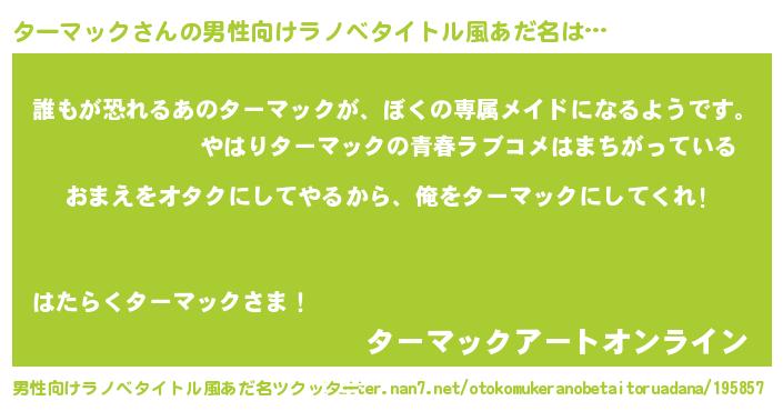 | ヒーロー風カッコイイあだ名 | 『正義の使者ターマック』『仮面ターダー』 |