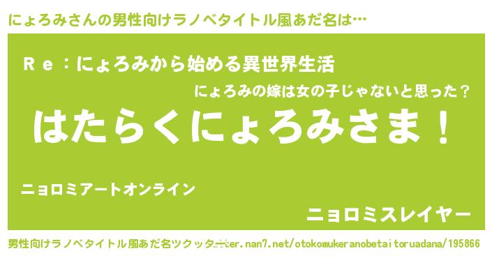 | ヒーロー風カッコイイあだ名 | 『ウルトラ戦士ニョロミ』『幻影騎士ニョ』 |