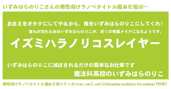 | ヘコむあだ名 | 『いずみはらのりこ(遠い目)』『いずふぇ~』 |