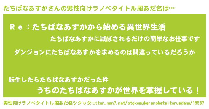 | 女子向けラノベタイトル風あだ名 | 『たちばなあすかは平凡を望む』 |