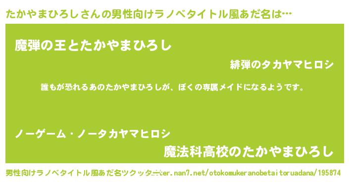 | ヘコむあだ名 | 『たかやまひろし(笑)』『たかっ子』 |
