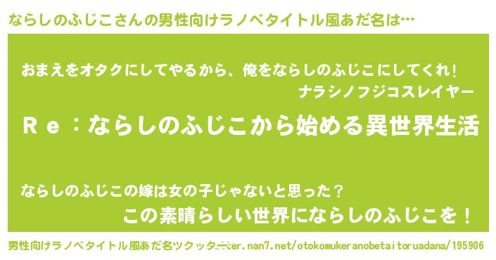 | 女子向けラノベタイトル風あだ名 | 『闇のならしのふじこ』 |