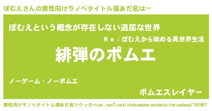 | ヘコむあだ名 | 『ぽむえ(遠い目)』『ぽむっふぃ~』 |