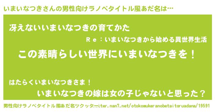 | 意味不明あだ名 | 『住所不定無職いまいなつき(56歳)』 |