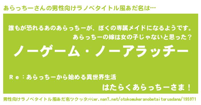 | 女子向けラノベタイトル風あだ名 | 『あらっちー恋絵巻』 |