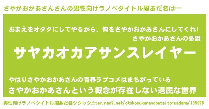 | ヒーロー風カッコイイあだ名 | 『正義の使者さやかおかあさん』 |