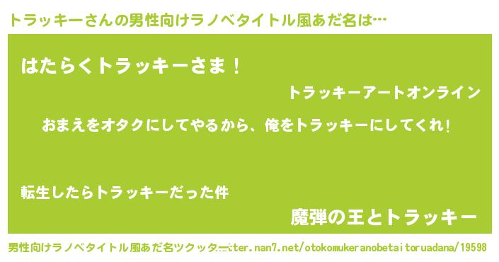 | 女子向けラノベタイトル風あだ名 | 『トラッキー夫妻のなれそめ』 |
