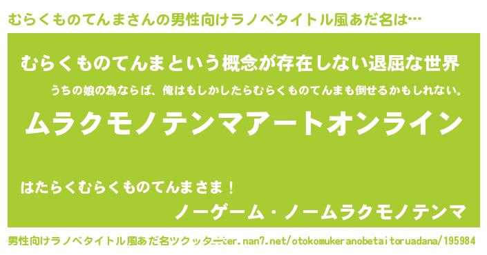 | ヒーロー風カッコイイあだ名 | 『スーパームラクモノテンマ』 |