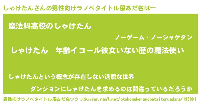 | ヒーロー風カッコイイあだ名 | 『最強戦士シャケタン』『魔戒騎士シャ』 |
