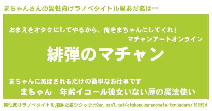 | 女子向けラノベタイトル風あだ名 | 『シンデレラまちゃん家の靴箱館』 |