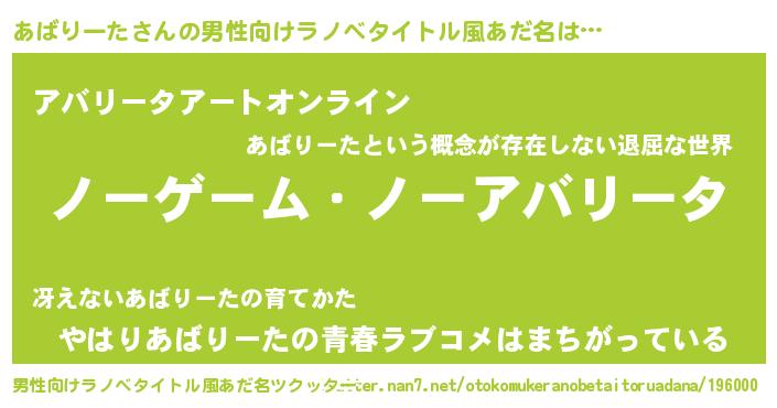 | 欧米人風あだ名 | 『ダニエルあばりーた』 |