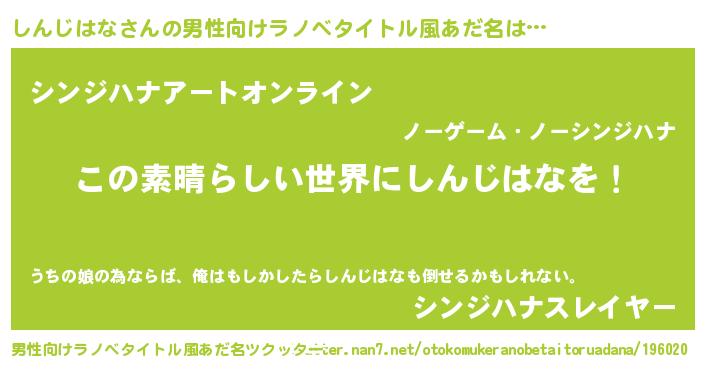 | 意味不明あだ名 | 『住所不定無職しんじはな(4歳)』 |