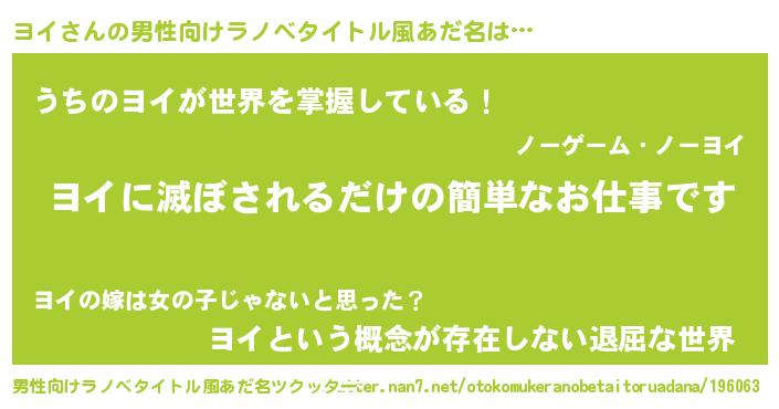 ヨイさんの男性向けラノベタイトル風あだ名をツクッター!