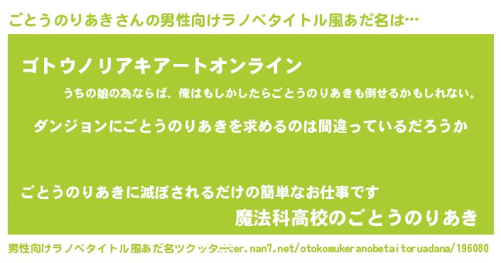 | 萌えアニメ | 主人公(ごとうのりあき)のあだ名『ごとくん』 |