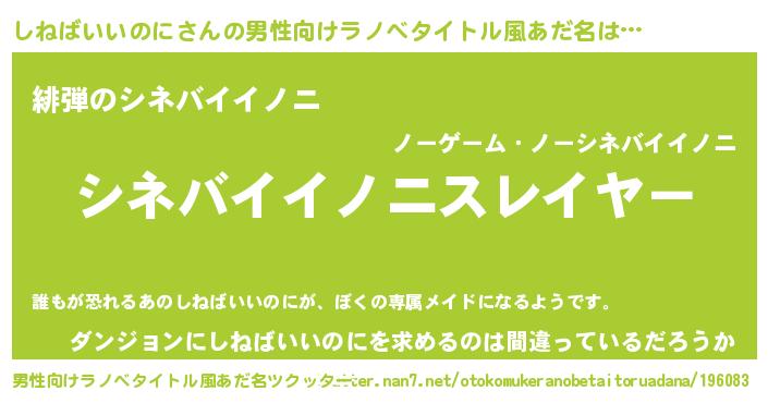 | ヒーロー風カッコイイあだ名 | 『暗黒騎士シネ』『ネオシネバイイノニ』 |