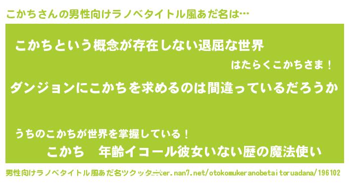 | 女子向けラノベタイトル風あだ名 | 『こかちの卵を拾いまして』 |