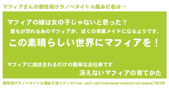 | 女子向けラノベタイトル風あだ名 | 『悪役マフィアに転生したようですが、知った事ではありません』 |