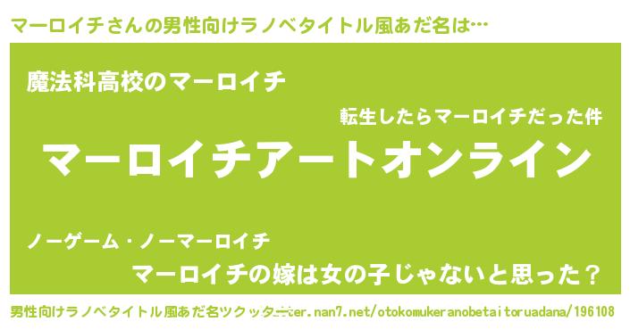 | 胡散臭い通販商品みたいなあだ名 | 『モテモテ間違いなし霊験あらたかなお札…その名も「マーロイチ」』 |