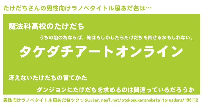 | 女子向けラノベタイトル風あだ名 | 『たけだち姫と円卓の騎士』 |