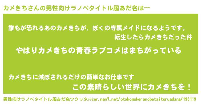 | 女子向けラノベタイトル風あだ名 | 『カメきちの雑貨屋さん』 |