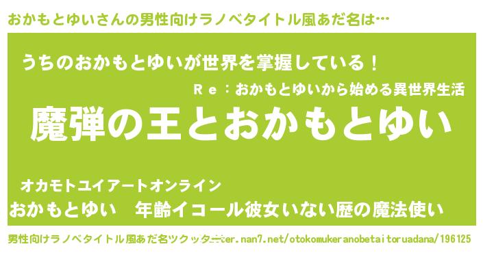 | 女子向けラノベタイトル風あだ名 | 『おかもとゆいが死なない童話 林檎のおかもとゆいの診療簿』 |