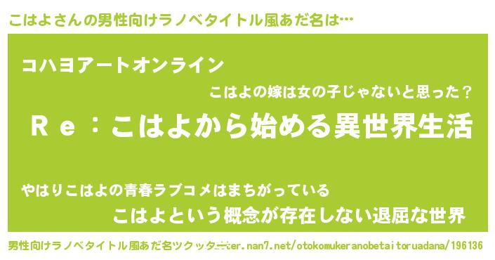 | 肩書あだ名 | 『こはよ閣下』『こはよ社長令嬢』 |