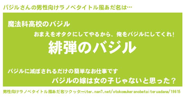 | ヒーロー風カッコイイあだ名 | 『超時空戦士バジル』『魔戒騎士バジ』 |
