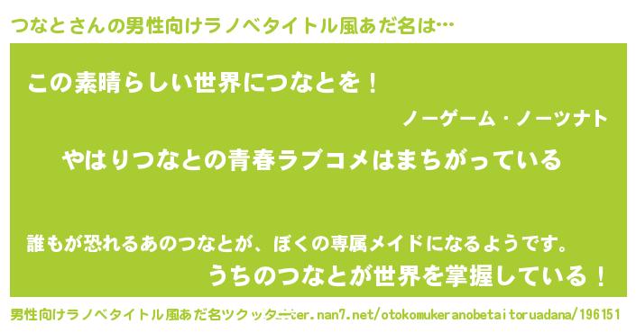 | 女子向けラノベタイトル風あだ名 | 『つなとの雑貨屋さん』 |