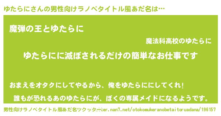 | 意味不明あだ名 | 『住所不定無職ゆたらに(7歳)』 |