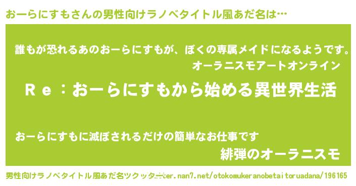 | 意味不明あだ名 | 『自称おーらにすも』 |