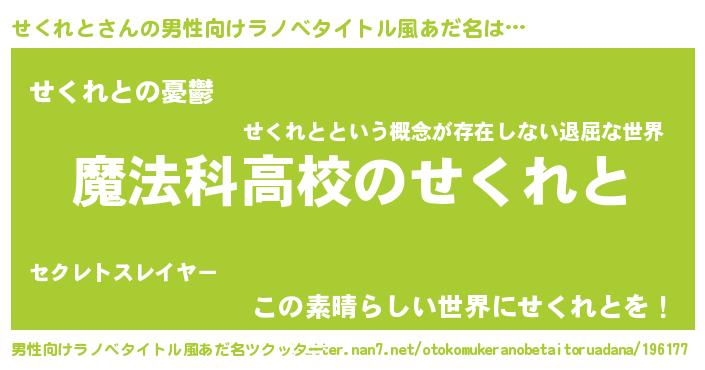 | 女子向けラノベタイトル風あだ名 | 『せくれとアンティーク』 |